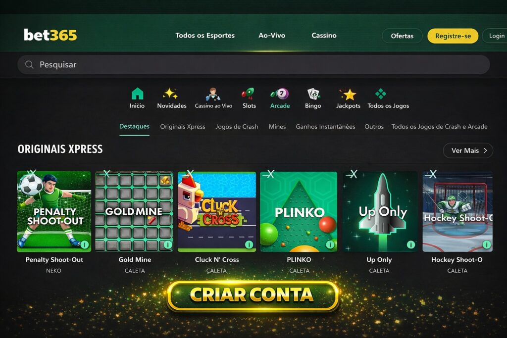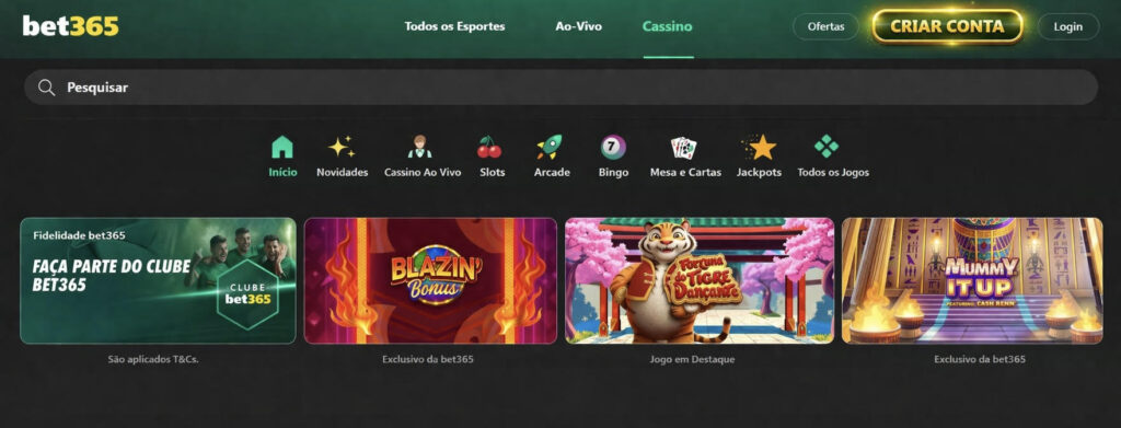 Ao se cadastrar na Bet365, terá acesso a uma impressionante diversidade de opções para jogar, tanto na vertente de apostas esportivas quanto de jogos de azar.